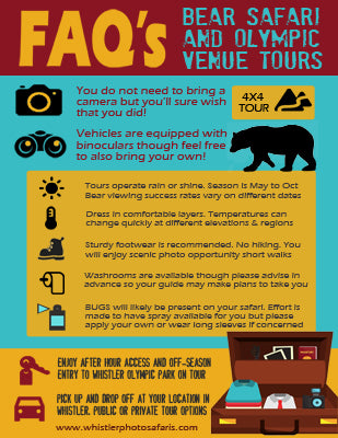 Our tours are your authentic opportunity to head into the wild with adventurers and highly educated guides. Spend a few hours driving through Whistler's extraordinary scenic routes and hidden back-country gems in search of the perfect memory for you to take home.  Enjoy the small group setting with your guide in one of our rugged, reliable yet comfortable vehicles and view any wildlife from the safety of the vehicle.